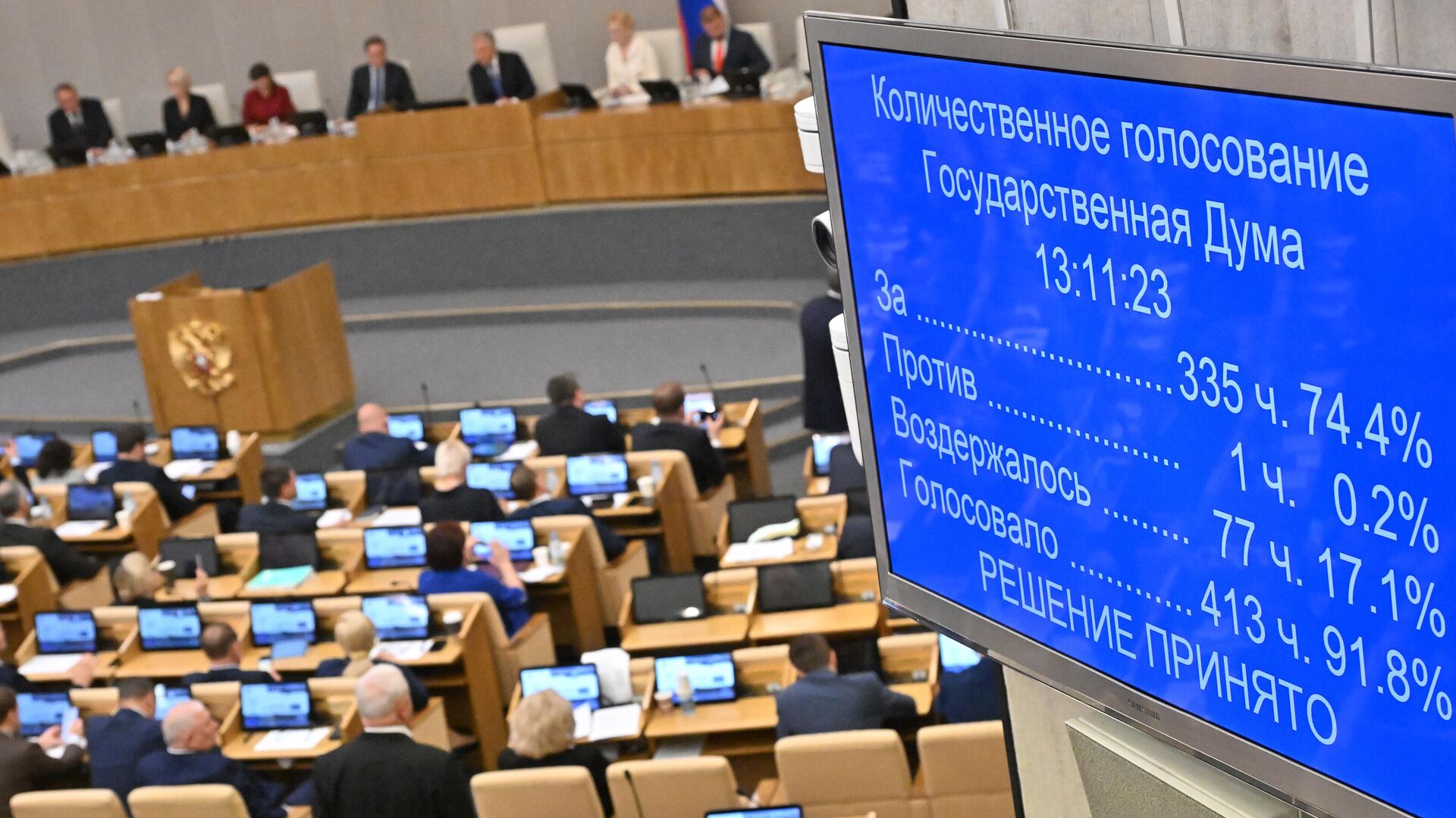 За документ проголосовали 335 депутатов, один высказался против, а 77 воздержались. Основными источниками финансирования дефицита будут внутренние государственные заимствования. Планируется увеличение объема фонда с 5,2% ВВП до шести. Среди ключевых приоритетов бюджета остаются социальные обязательства, обеспечение безопасности и обороны, технологический суверенитет и развитие инфраструктуры. Расходы на социальную политику в 2025-2027 годах составят около 21 трлн рублей, на национальную оборону и безопасность, правоохранительную деятельность — 14 трлн, на национальную экономику — 14 трлн рублей. Общий объем бюджетных ассигнований на исполнение публичных нормативных обязательств в 2025 году составит 1,634 трлн рублей, в 2026-м — 1,478 трлн, в 2027-м — 1,537 трлн. На федеральные целевые программы в открытой части бюджета предусмотрено в 2025 году 207,9 млрд рублей, в 2026-м — 78,2 млрд, в 2027-м — 45 млрд. Трансферты региональным бюджетам составят 3,44 трлн, 3,53 трлн и 3,59 трлн рублей соответственно.