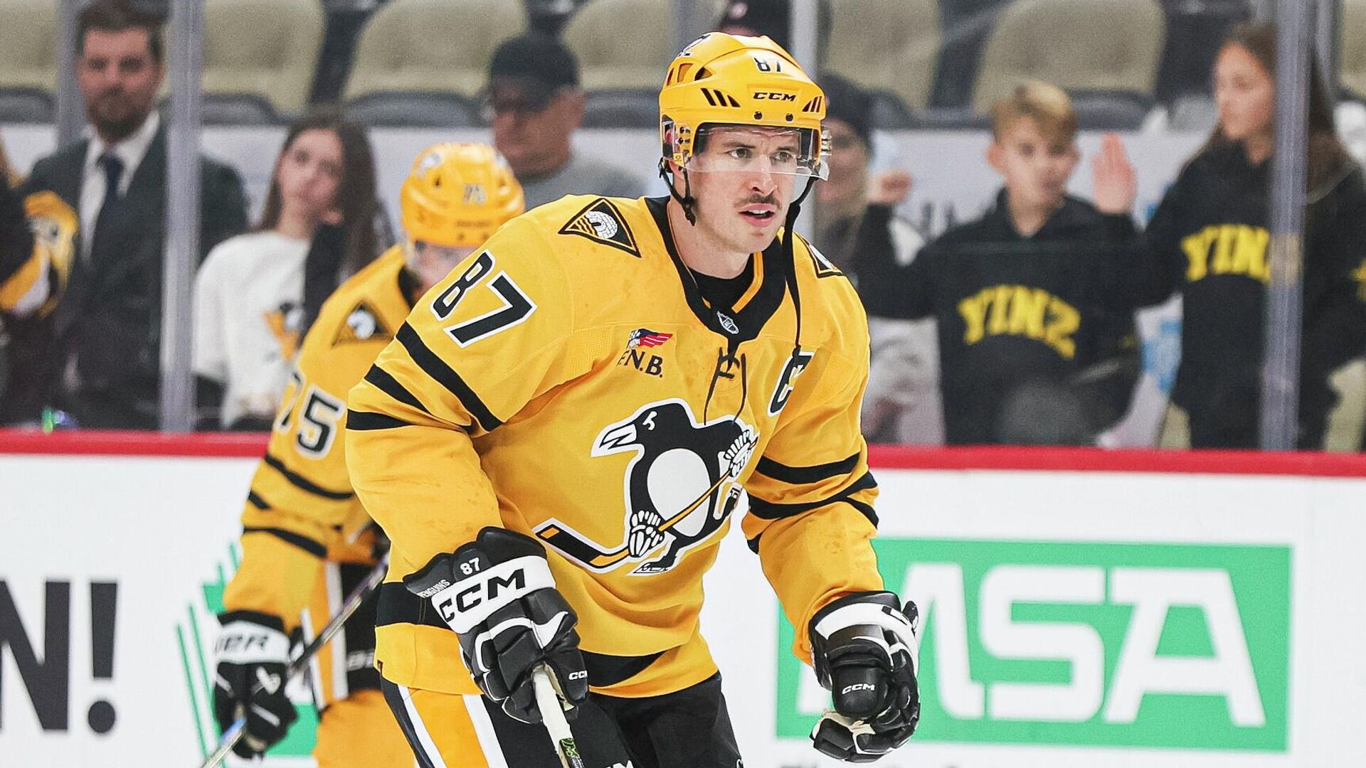 Ранее капитан «Питтсбурга» и сборной Канады пропустил 11 игр из-за травмы, полученной 18 февраля в четвертьфинальном матче зимних Олимпийских игр 2026 года против сборной Чехии (4:3 в овертайме). Он вернулся на лёд 18 марта в поединке с «Каролиной».